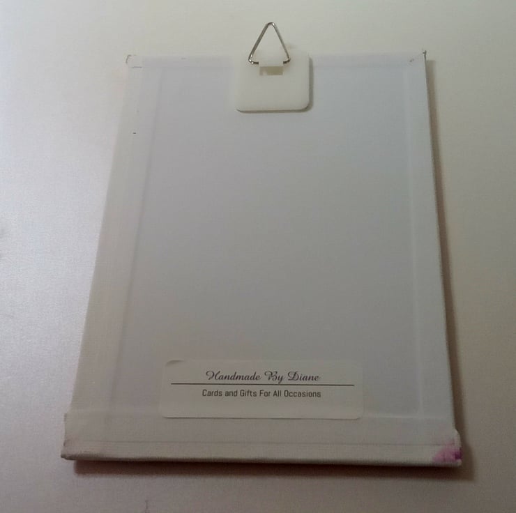 This sign is made from a sturdy canvas board, I've added a fold-down h hook on the back so it can either hang up on a wall or be folded down and propped up on a shelf
