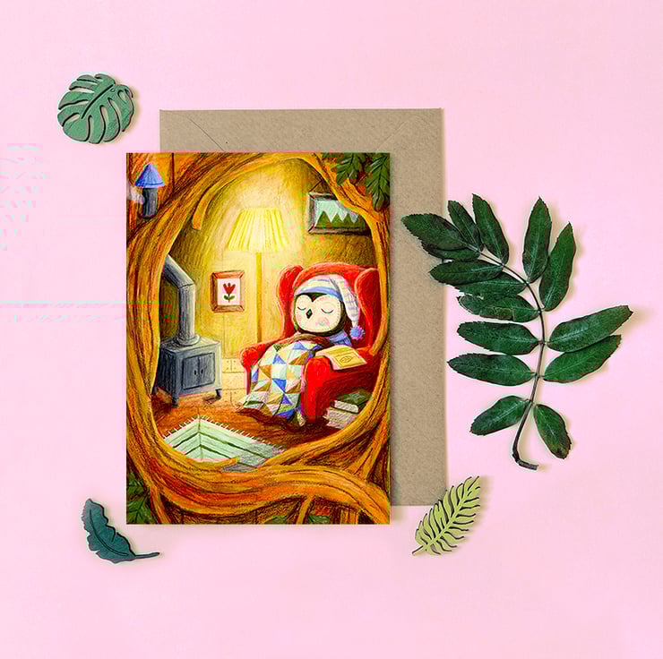 - A very cute blank greeting card based on one of my original gouache paintings.