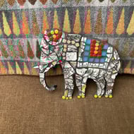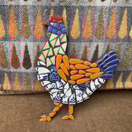 Mosaic of tiles and upcycled ceramics on wooden backing.Ready to hang. Approx 30 x 15cm