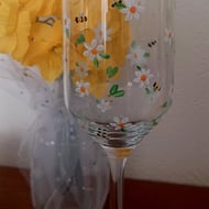 These lovely keyrings (or bag charms) are made with soft wool felt in a colourful mustard shade. An embroidered daisy has been added with two cute 'beaded' bees.