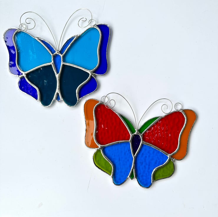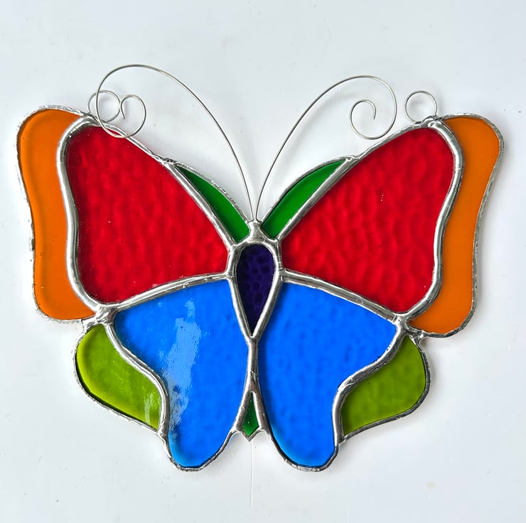 Stained Glass Large Butterfly Suncatcher - Handmade Decoration - Multi