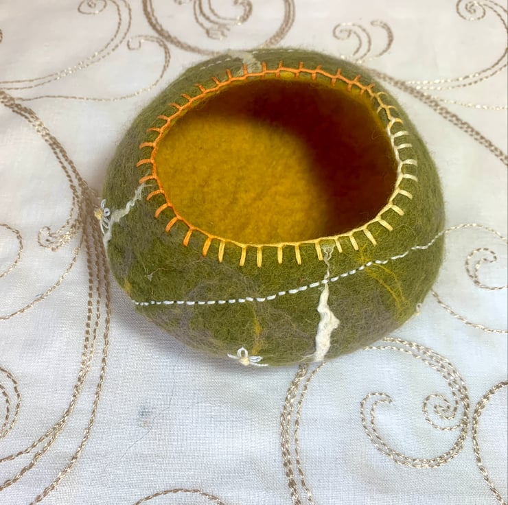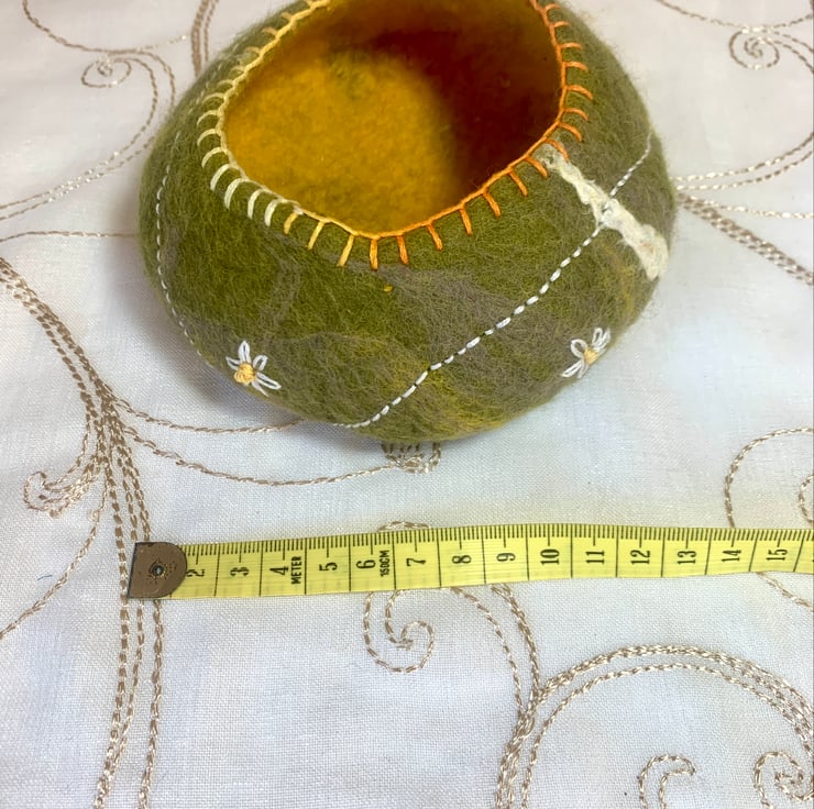 Handmade felt keepsake bowl with hand embroidery. It’s just been around sometime and would like a new home!