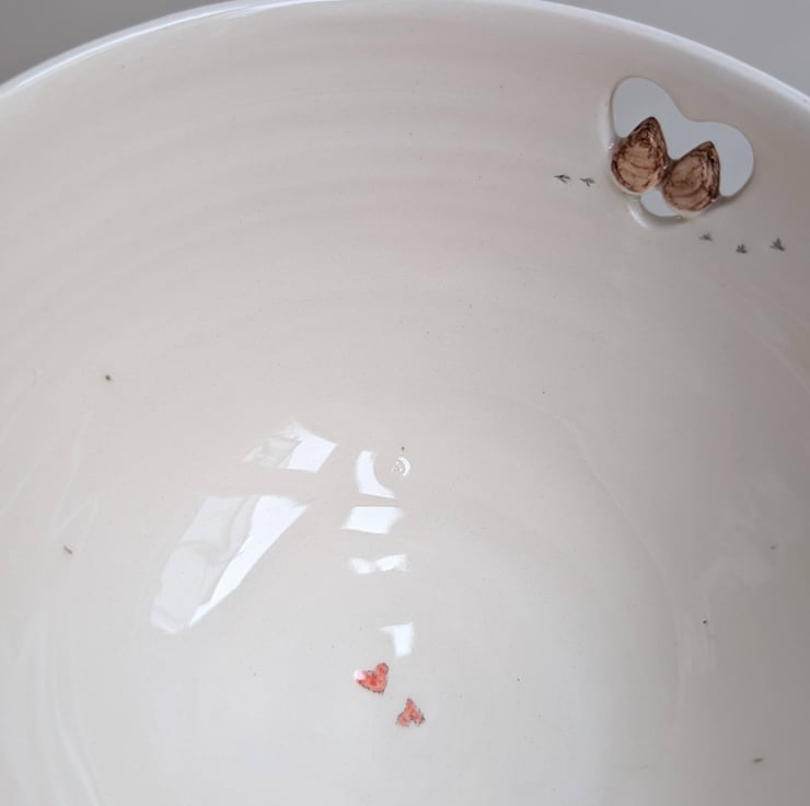 I have made many pieces with tiny robins, such great little bitds. They seem to suit perching in this heart cut out bowl.