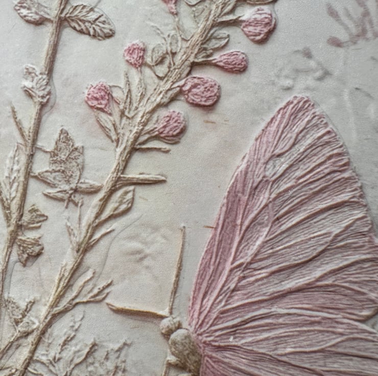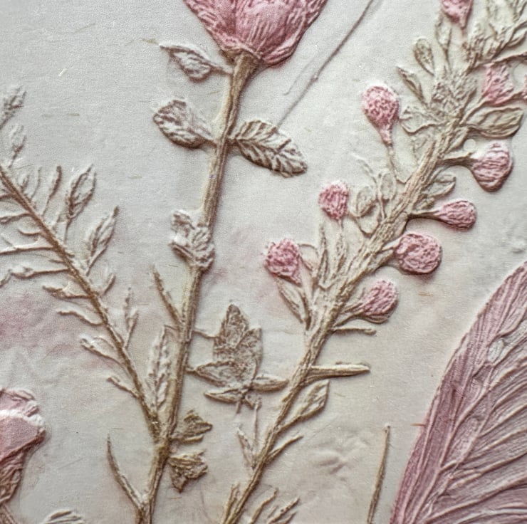 The beautifully embossed floral art paper captures the freshness of spring with delicate pastel colours, soft green foliage, a beautiful butterfly and elegant textured detail.
