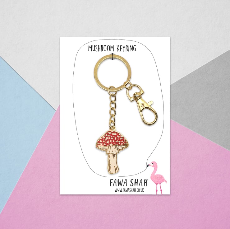 - A beautiful hard enamel Mushroom keyring.