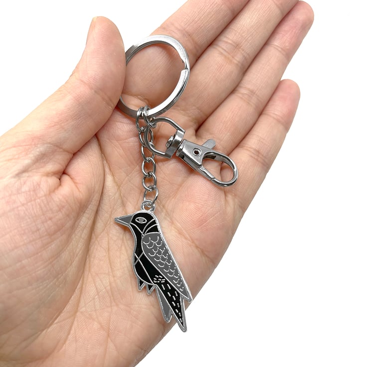 - A gorgeous silver hard enamel Raven keyring