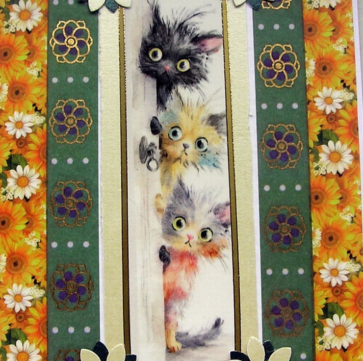 Playful Kittens - Hand Crafted Decoupage Greeting Card - Blank - 3099