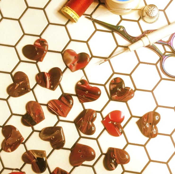 These striking heart shaped buttons are guaranteed to add a unique charm to any garment. Lightweight yet hardwearing, they will last for as long as you want them to!