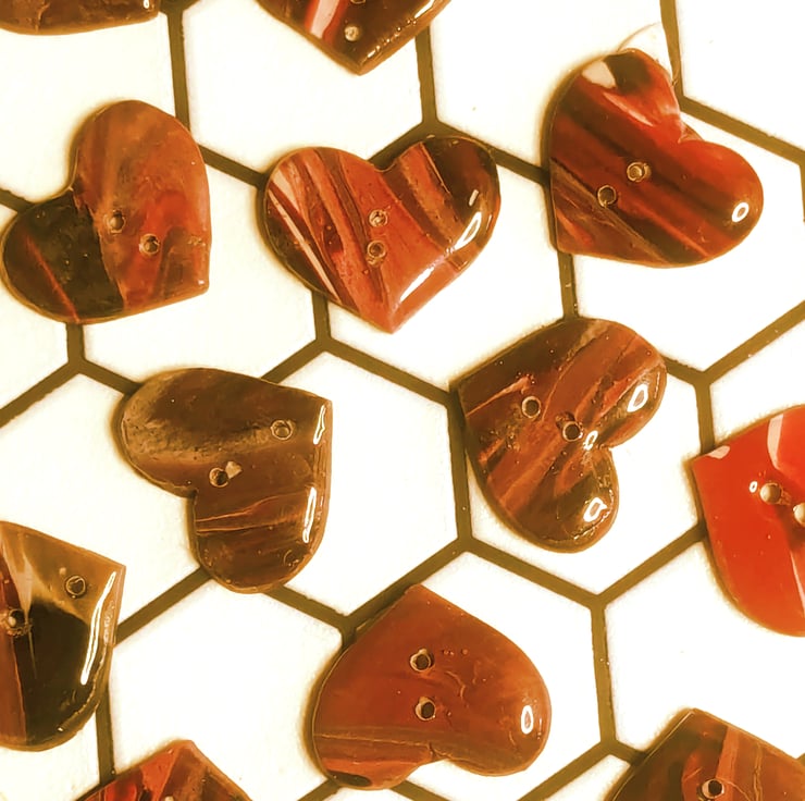 Heart buttons - 30mm - red marble effect