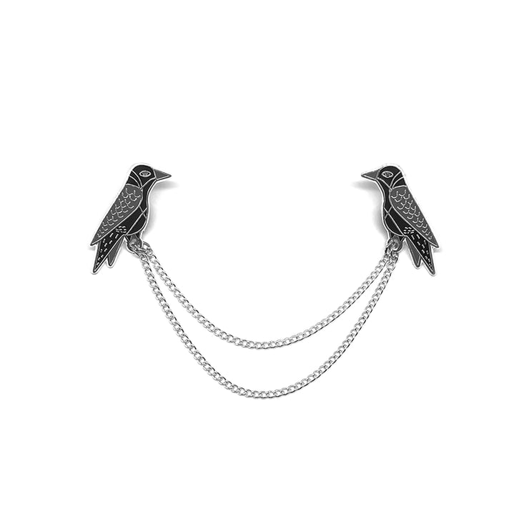 Silver Raven Collar Chain - Hard Enamel Pin - Jewellery