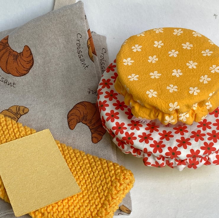 This lovely set would make a great gift for someone who is trying to live more sustainably. The attractive items, made from natural fibres can help the user to make simple changes in their home which may have significant effects on the amount of waste produced or plastics used. The items are pretty and practical - they won't languish in a drawer. They will be used every day.