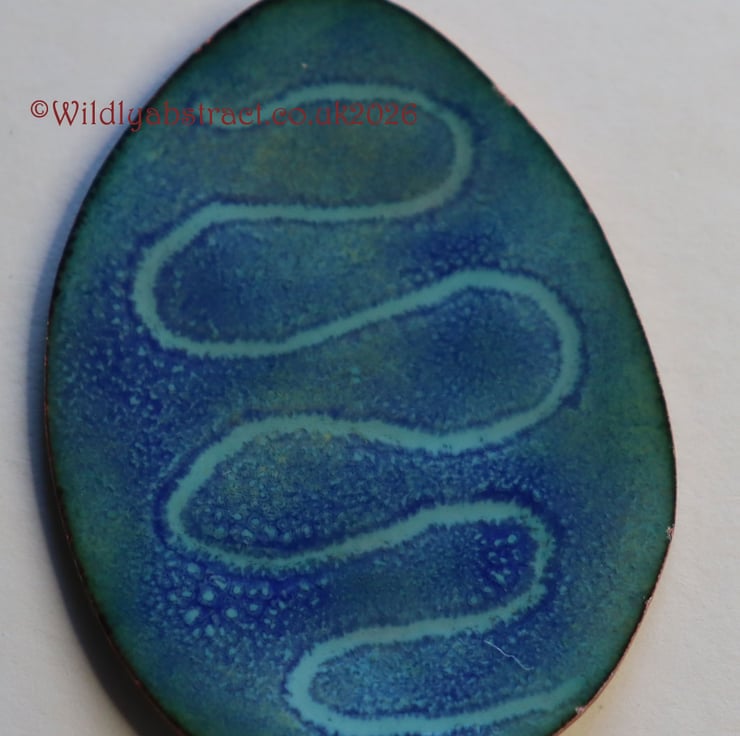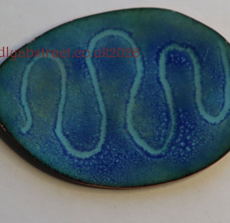This one of a kind trinket dish was hand-crafted using traditional kiln-fired enamelling techniques. It features a blue crackle recipe and scratched through (sgraffito) snake swirl pattern. The dish is counter-enamelled to provide a professional and durable finish. It can be used a holder for paper-clips or jewellery and would look fantastic just a decorative item on a coffee table.