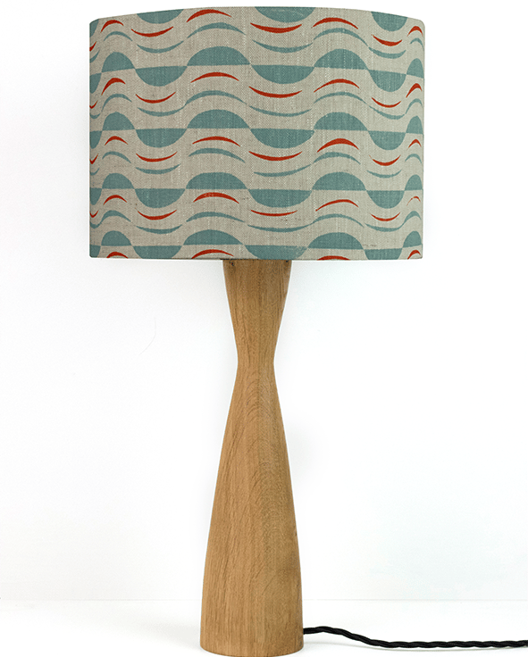 Tall hand printed medium (30cm diameter) lampshade in my Maronti design. Printed in two colours, powder blue and orange.