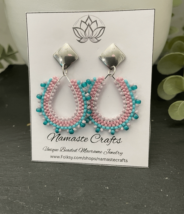 Pretty beaded dangle tear drop design handmade earrings, beaded jewelry, boho