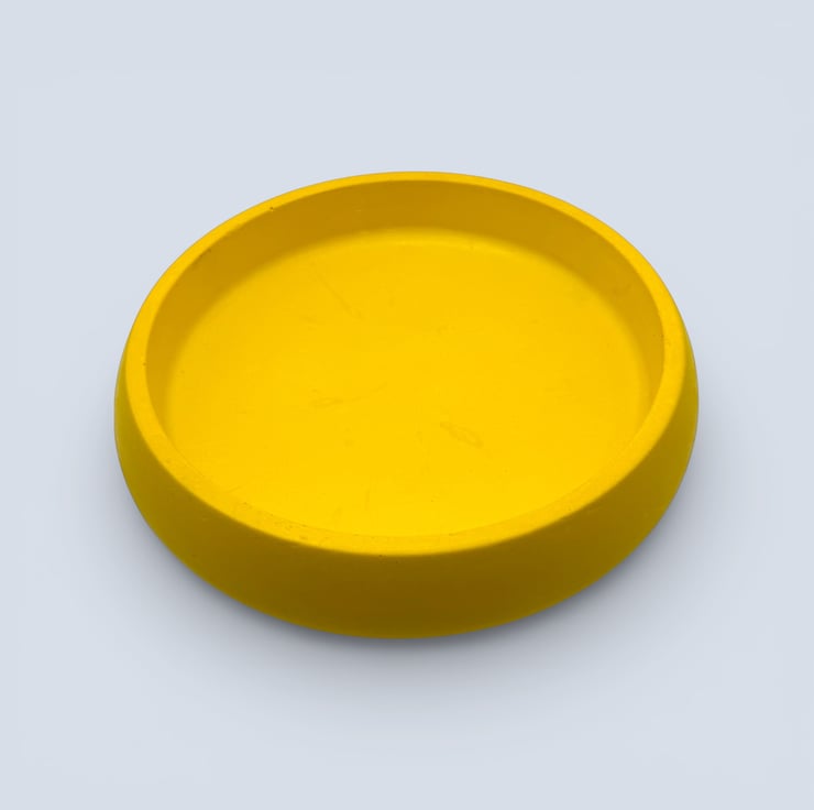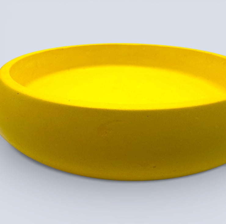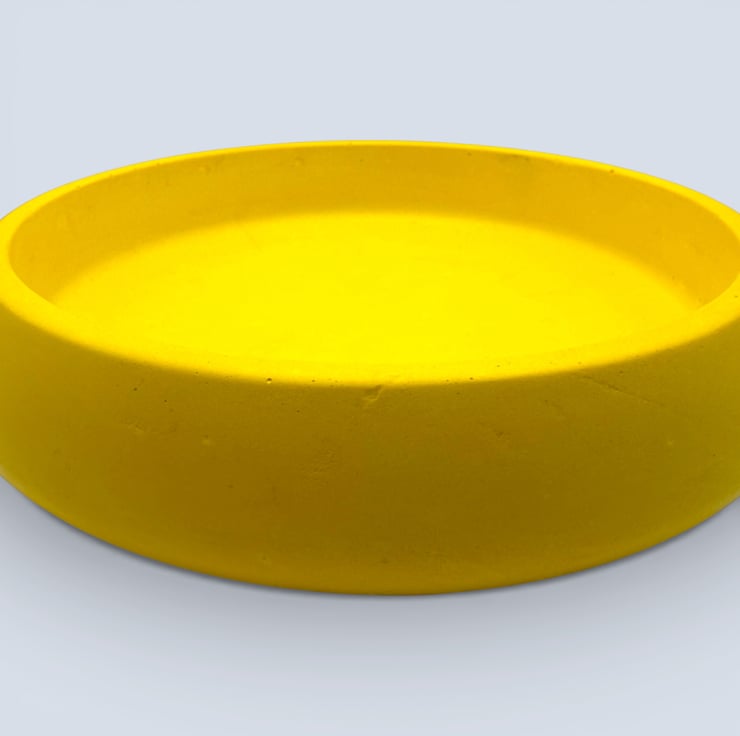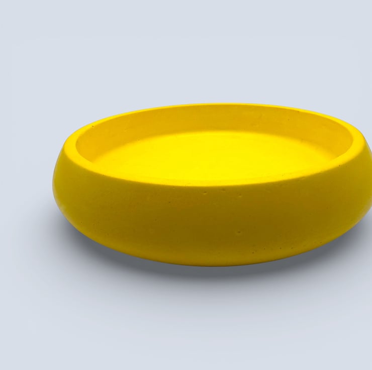 Yellow round fruit bowl for kitchen tables, countertops and dining spaces. This bold handmade bowl has a smooth, minimalist shape and a bright matte yellow finish, making it ideal for holding fresh fruit or used as a decorative bowl on a table, island or sideboard. It brings a cheerful pop of colour to modern interiors and works beautifully as a statement piece.