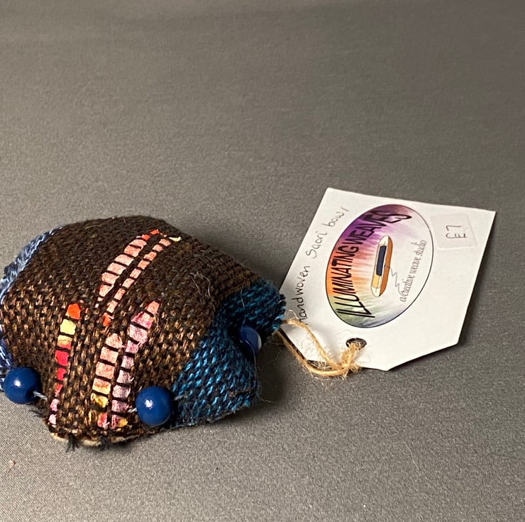 All the weaving is done on a Saori loom in my studio in South Staffordshire. Freestyle weaving leads to no two items being the same so this is a one of a kind item.