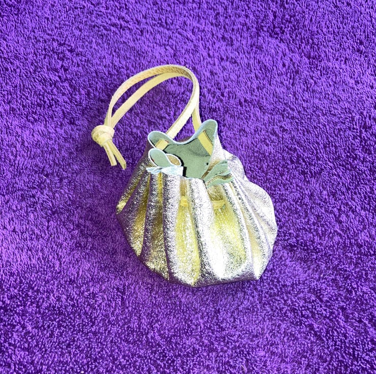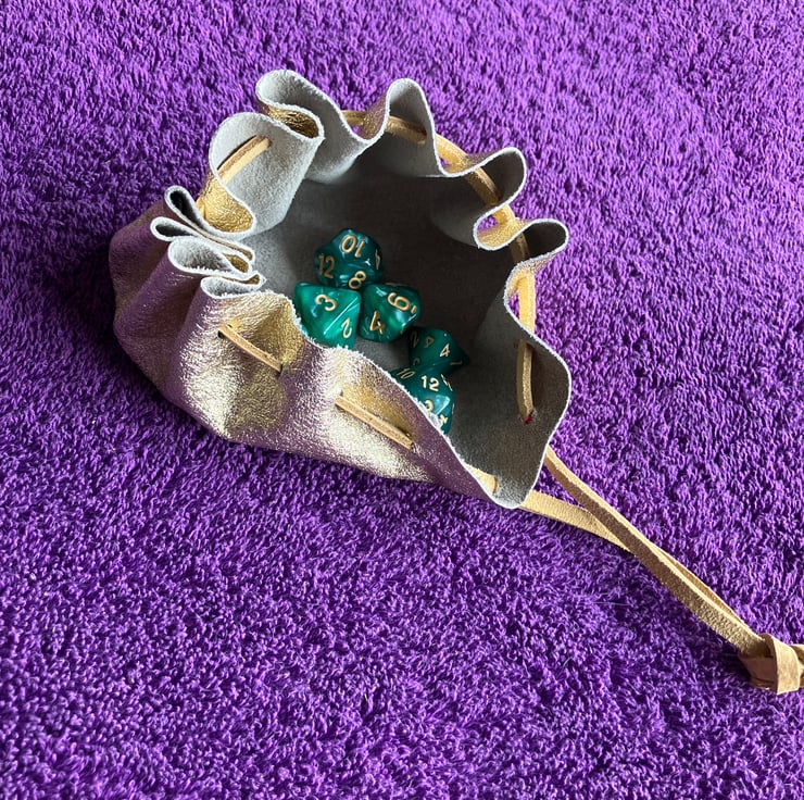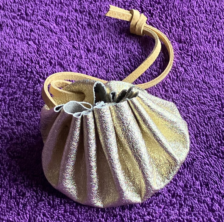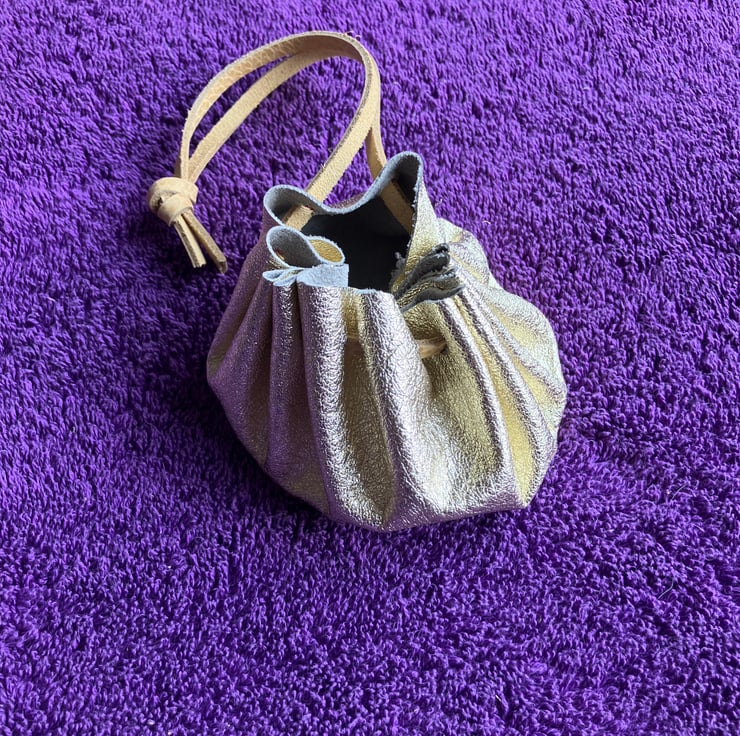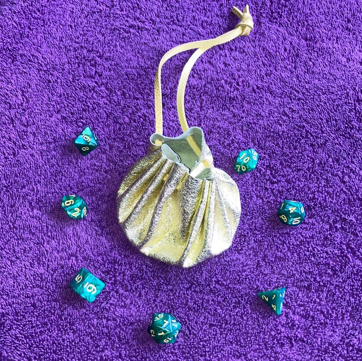 Small metallic gold coloured leather drawstring pouch (dice NOT included)