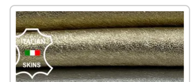 The pouch is made from a soft (but firm) metallic gold coloured leather and the draw string is a tan coloured lacing. One of the photos is a close up of the leather used.