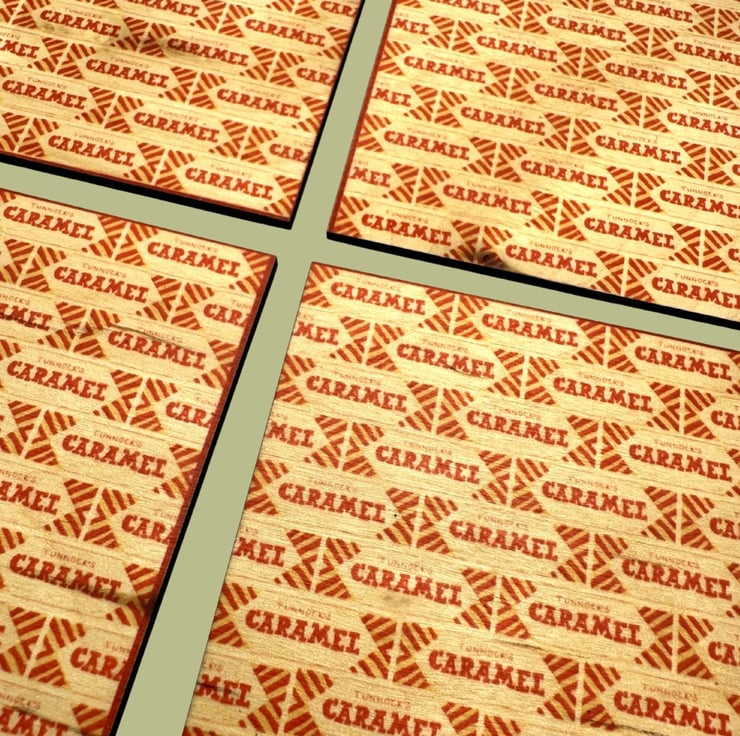 A Caramel magnet and postcard set, please note that the magnet is classed as a Seconds item as I used a different wood and after the sublimation process the heat drew out wood markings that I wasn't happy with. The design is from one of my original linoprints, and has been digitally edited prior to being printed onto birch 3mm ply and laser cut. Once through the printing process they have been hand sealed with a polyurethane finish.