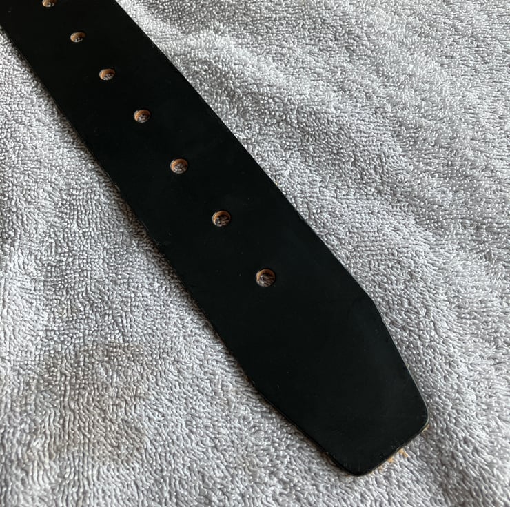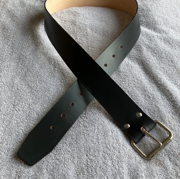 Please note, the leather was bought pre-dyed so there may be some slight imperfections in the leather itself, which gives it loads of character. For size: please be sure to measure your waist (in clothing) for best fit. Additionally, please note that there is no additional belt loop, so this is best worn with trousers/jeans that have belt loops.