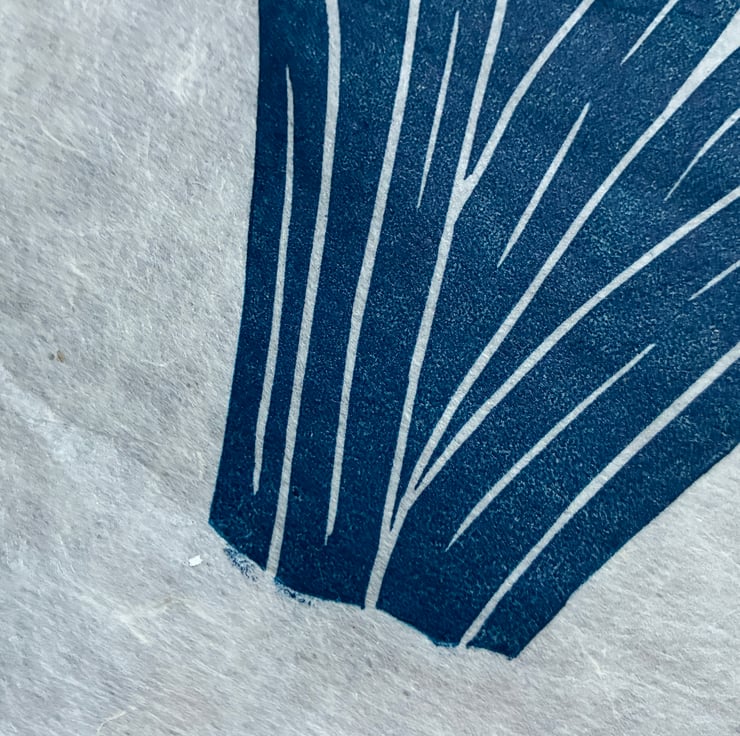 I've listed this original linocut as a second because the print is a little 'salty' (ink is more mottled than flat). Other than that, it looks lovely and you might even enjoy the extra handmade character these tiny quirks give the piece! The print is made on beautiful handmade paper, which has a translucent quality where you can see all the natural fibres. It also features a deckled edge that makes each piece feel truly special. The print measures approximately 8 x 10 in, though there is slight variation in size and texture due to the nature of the handmade paper and the wispy edges.