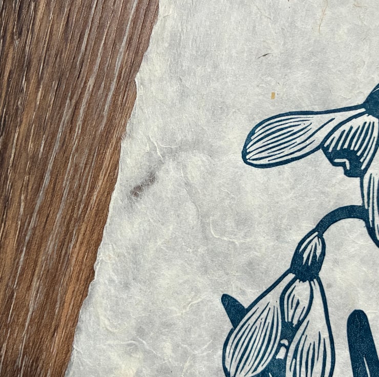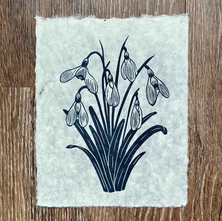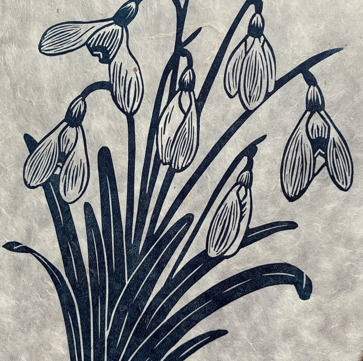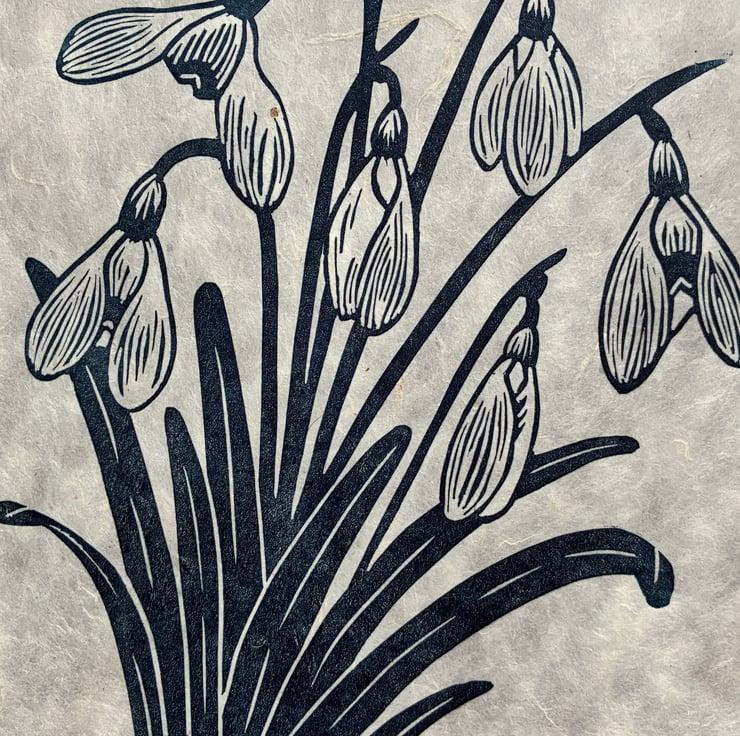 PERFECTLY IMPERFECT Snowdrops Original Lino Print in Navy Blue