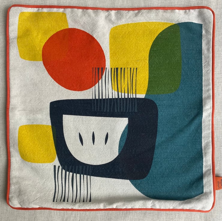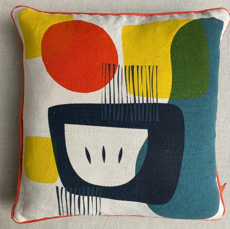 Hand screen printed in four colours, each motif is printed with paper cut stencil making each cushion slightly different (I have three others available in the sale)