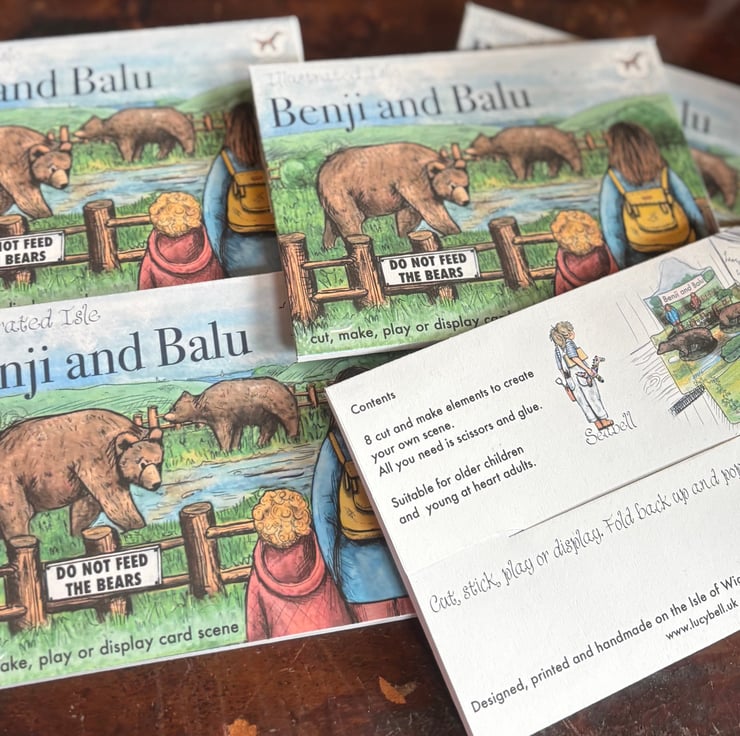 Benji and Balu live on the Isle of Wight at the Wild Heart Animal Sanctuary. This pack is Inspired by vintage souvenirs and traditional pastimes, this cut out and make pack is designed to bring a smile, both while making and when on display. It’s designed to sit on a shelf.