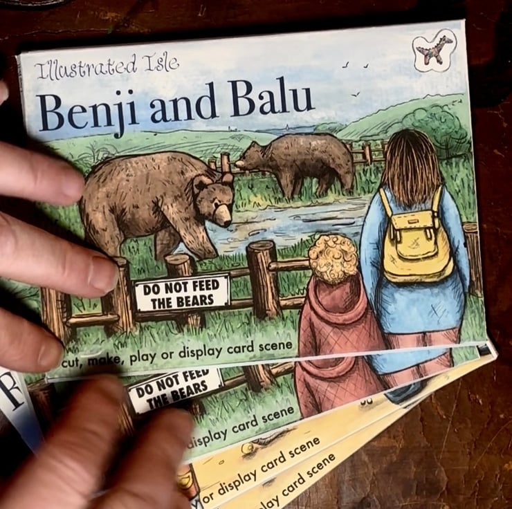 Inspired by traditional souvenirs and vintage activities, these packs have a feel of ladybird books, with the use of mat printing on recycled card. The bears are a joy to watch and their story wonderful. As an illustrator it was a joy to portray them in this make your own scene.