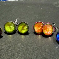 Lovely spring inspired glass earrings with marini glass flower and leaf design, perfect mothers day gift. Sterling silver stud