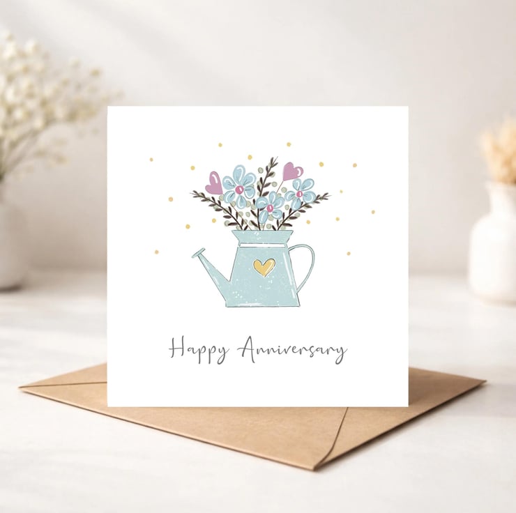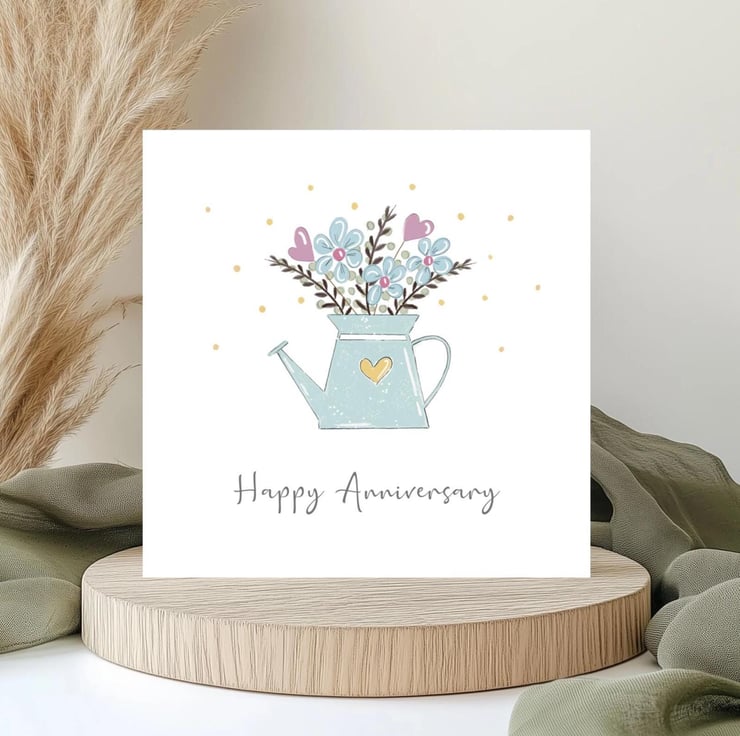 Congratulations to a special couple on their wedding anniversary Pretty floral watering can illustration to simply say Happy Anniversary