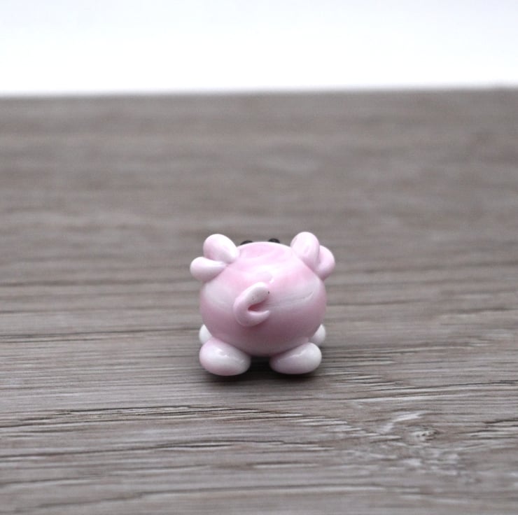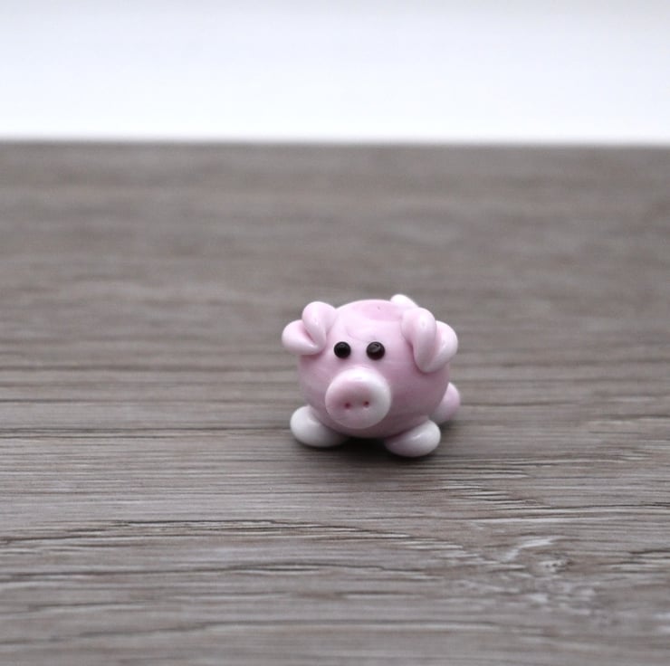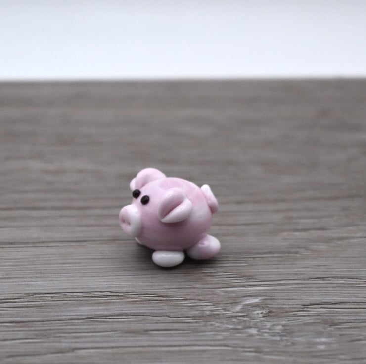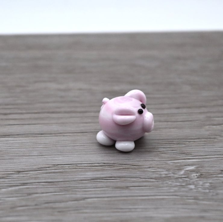 A small glass pig made by hand using a technique called lampworking.