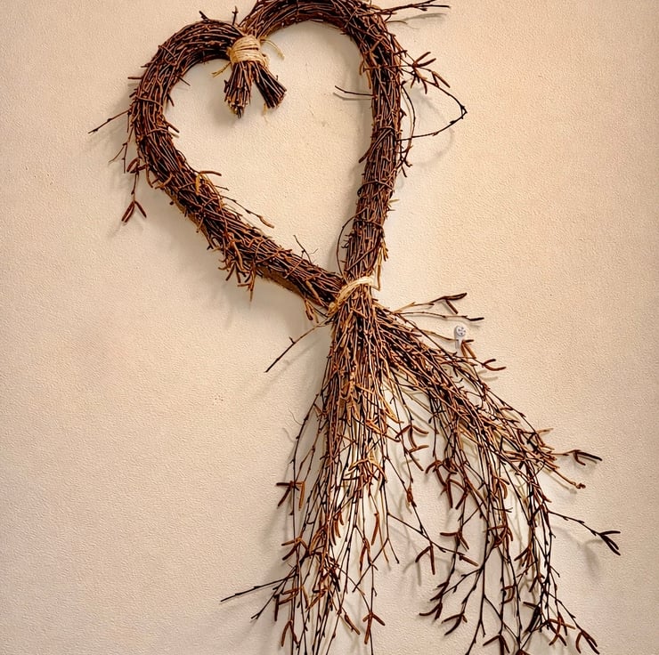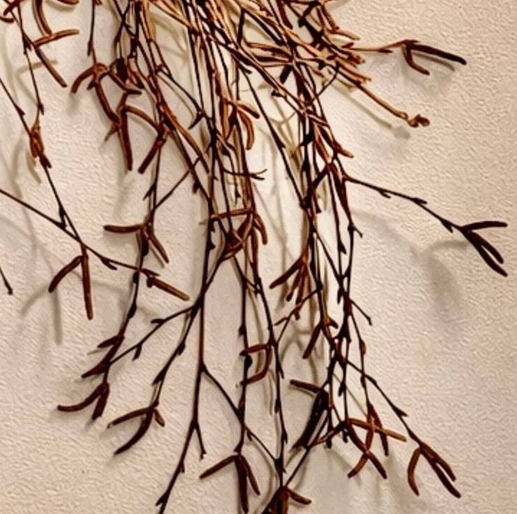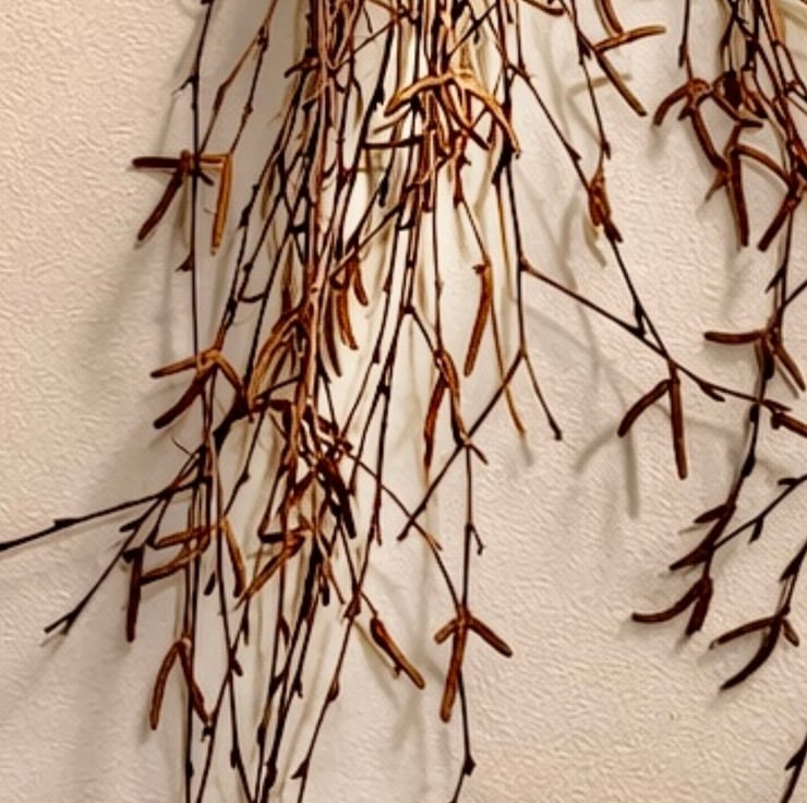I’ve made plenty of willow and hazel decorations but the tangling tresses of the silver birch have been drawing me to work with it. It’s supple and tactile, and forms a beautiful shape. I enjoy how the tails fall so naturally down the wall. I hope you love it as much as I do