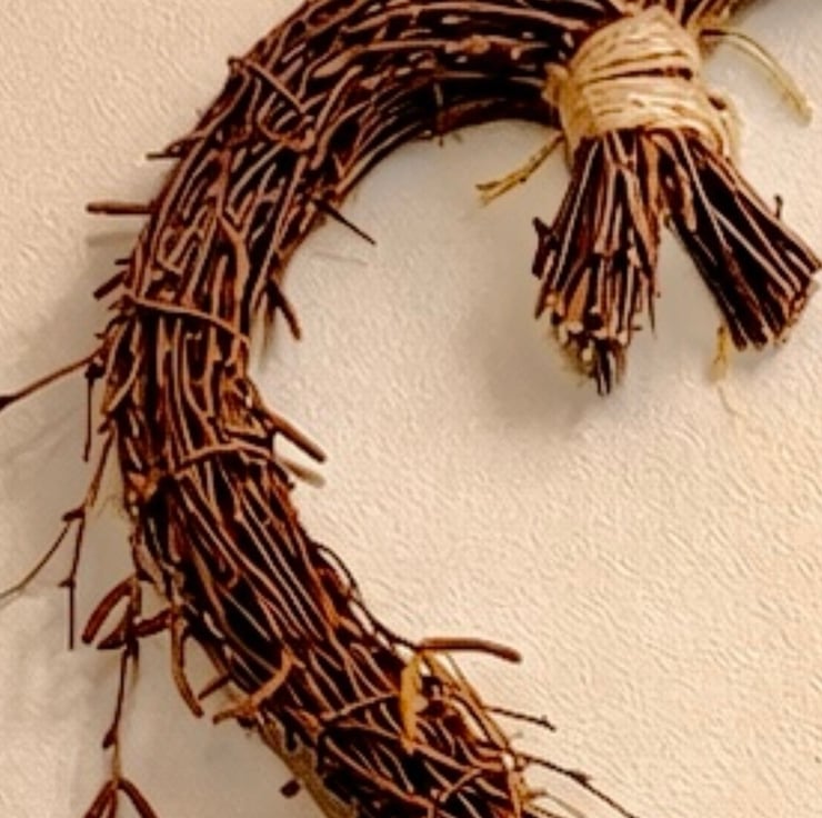 Perfect as it is it for adding adornments. This wreath is 30cm wide and approx 80cm tall.
