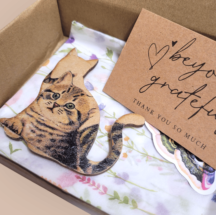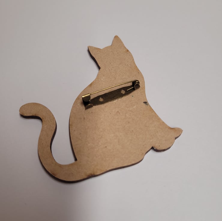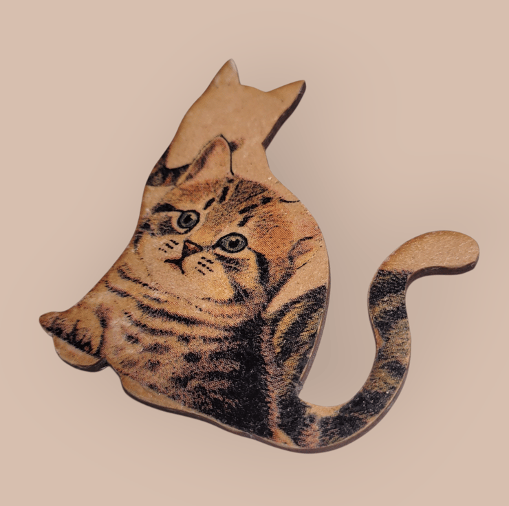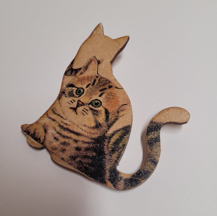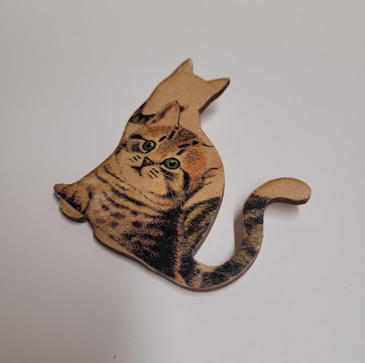 Decoupage Wooden Cat Brooch.
