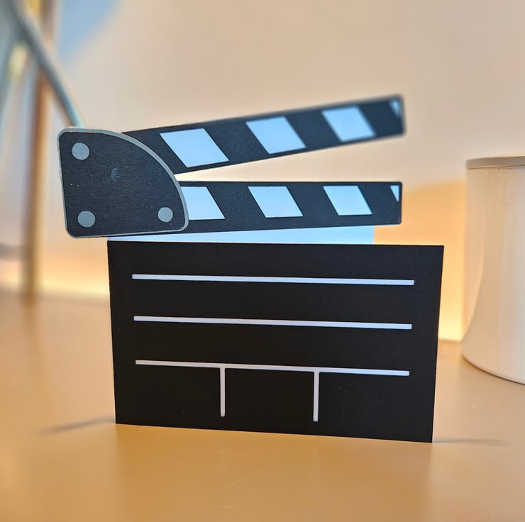 Happy birthday or happy occasion! This Movie Clapperboard Card featuring perfect for any celebration. Handmade and personalised with a blank inset, this card is designed for multipurpose use. At 4.7 inches tall and 4.5 inches wide, it comes with an envelope for easy gifting. Let the recipient know how much you care with this unique film themed greeting card.