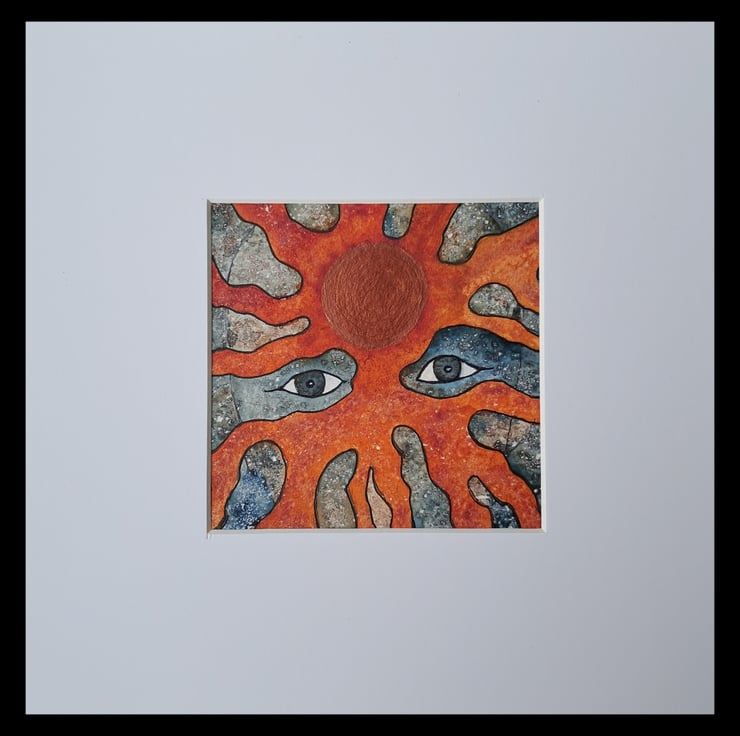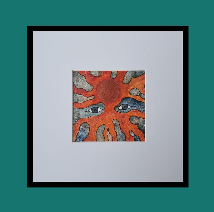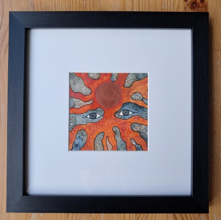Size of painting 9.5 x 9.5 cm (3.75 x 3.75 ins) in an 8 x 8 inch black frame.