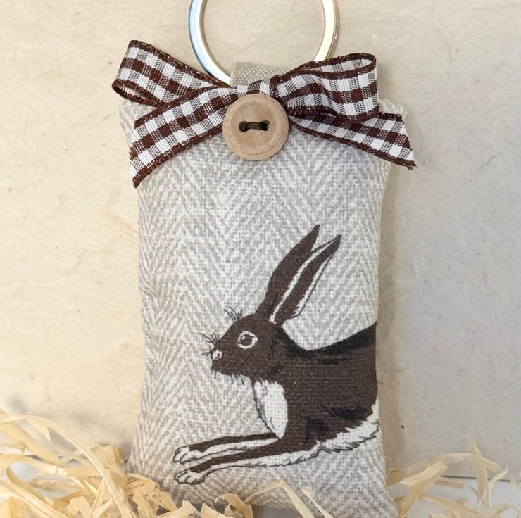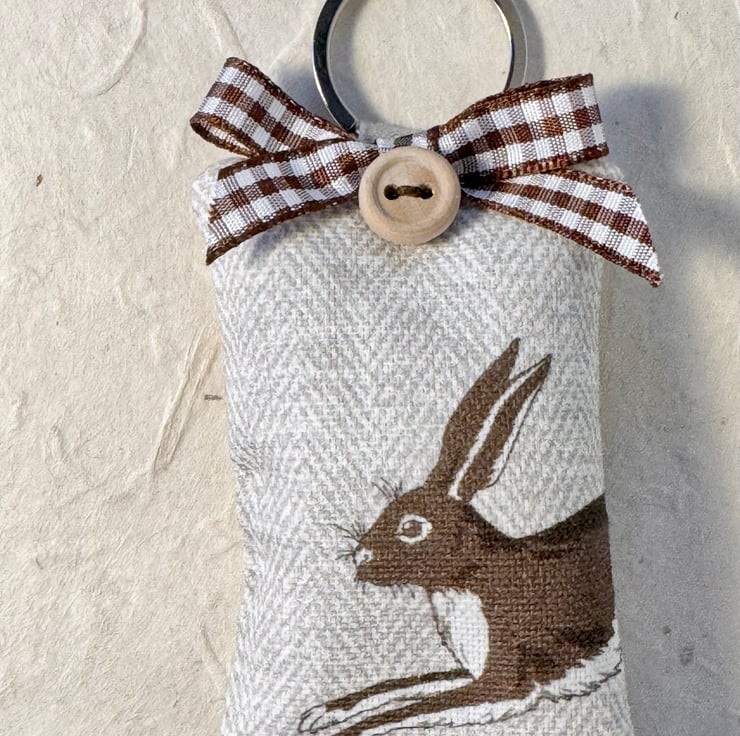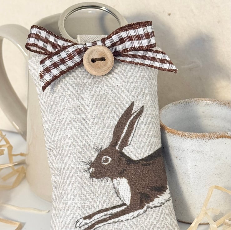 A key ring for anyone who loves wild life, animals and specifically long-eared, long-legged hares. And especially suitable at Easter time - a beautiful and useful handmade gift.