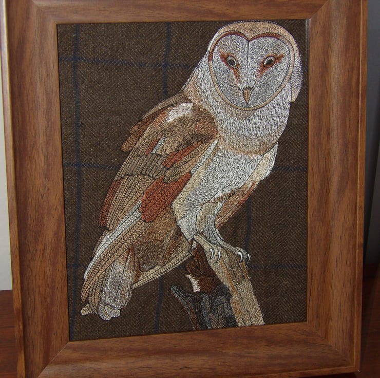machine embroidered in lovely colours on tweed fabric with a slight shimmery look