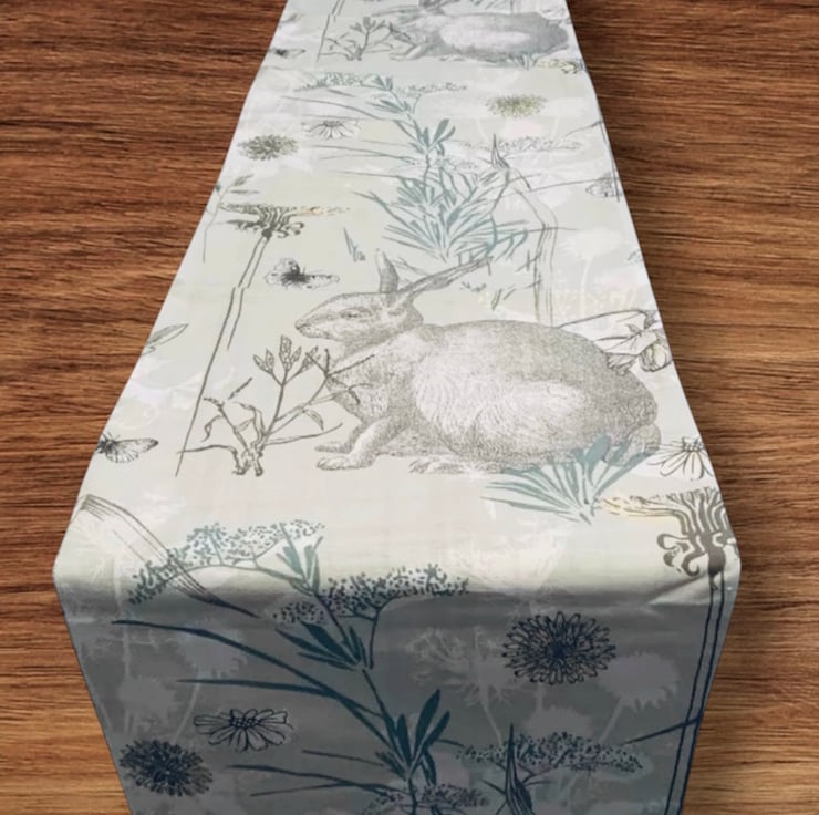 Add a touch of nature to your dining table with this beautiful hare print Table Runner by InknstitchKraft. Measuring in three lengths and made from 100% cotton, this handmade table runner features a contemporary design with an abstract pattern and a bee character theme. The multicoloured runner is perfect for any occasion, adding a pop of colour to your kitchen or dining room. Its shape is rectangular, with a length of more than 110 cm and a width 30cm. This high-quality table runner is perfect for those who appreciate unique and handmade products. Made in the United Kingdom, it is a great addition to your kitchen linen and textiles collection. Ideal for use during spring or summer, it will instantly transform your dining space into a beautiful and inviting area.
