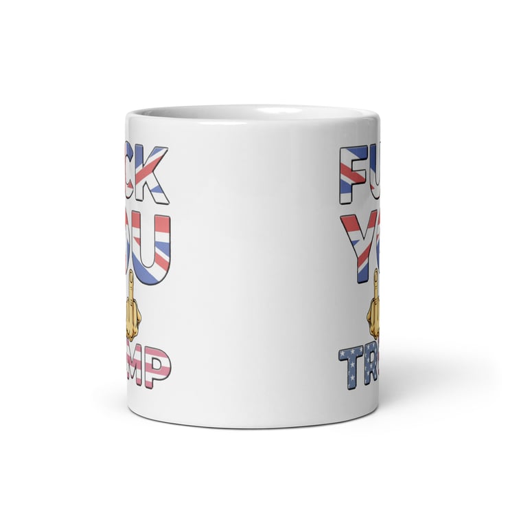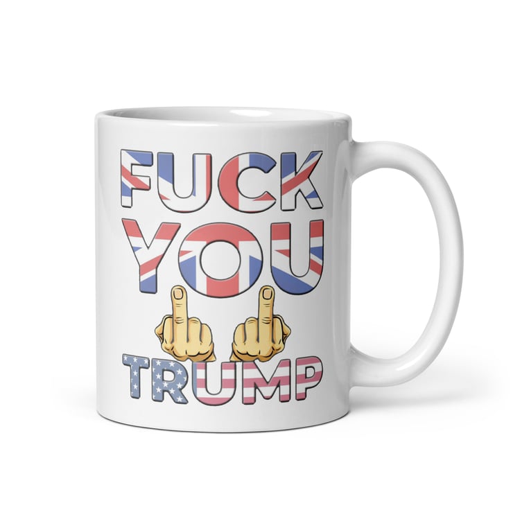 Make a bold statement with this eye-catching anti-Trump political satire mug. Featuring strong typography with patriotic colour styling and humorous graphic artwork, this novelty coffee cup is designed for those who enjoy outspoken political humour and current affairs satire.