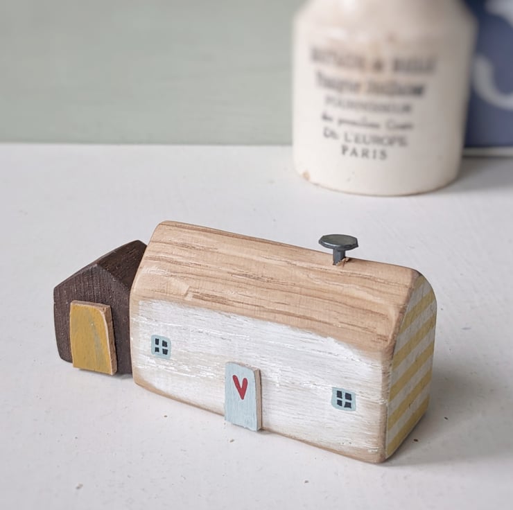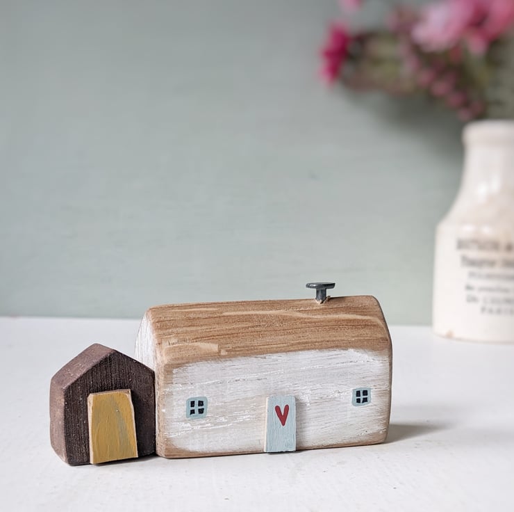 Little Handmade Painted Wooden House with Teeny Side Shed