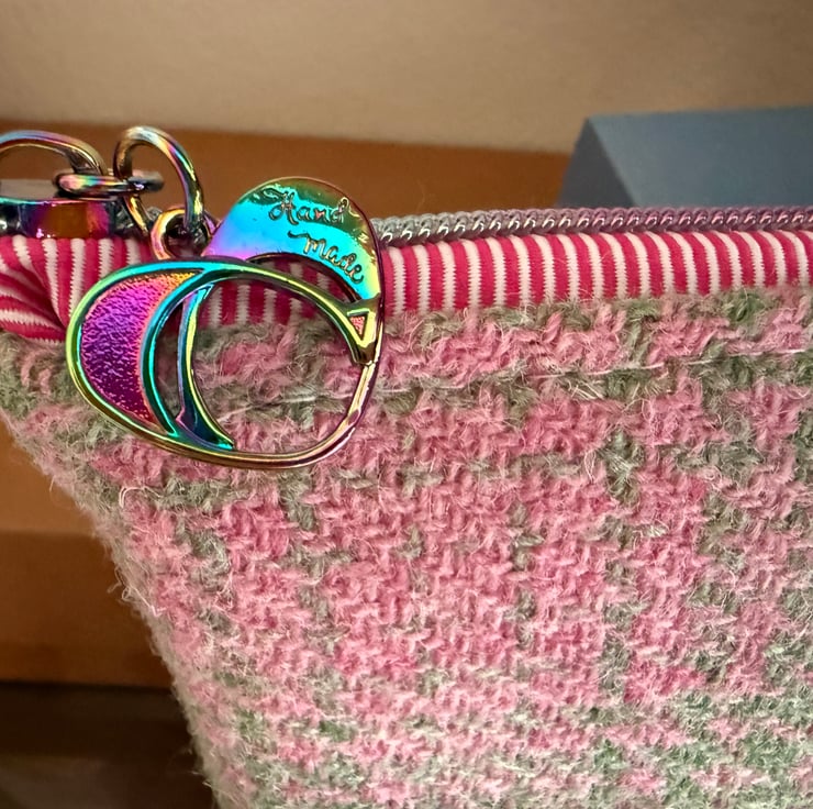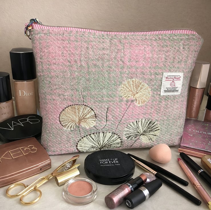 A stunning embroidered Harris Tweed makeup pouch - fully lined in a wipe clean vinyl.
