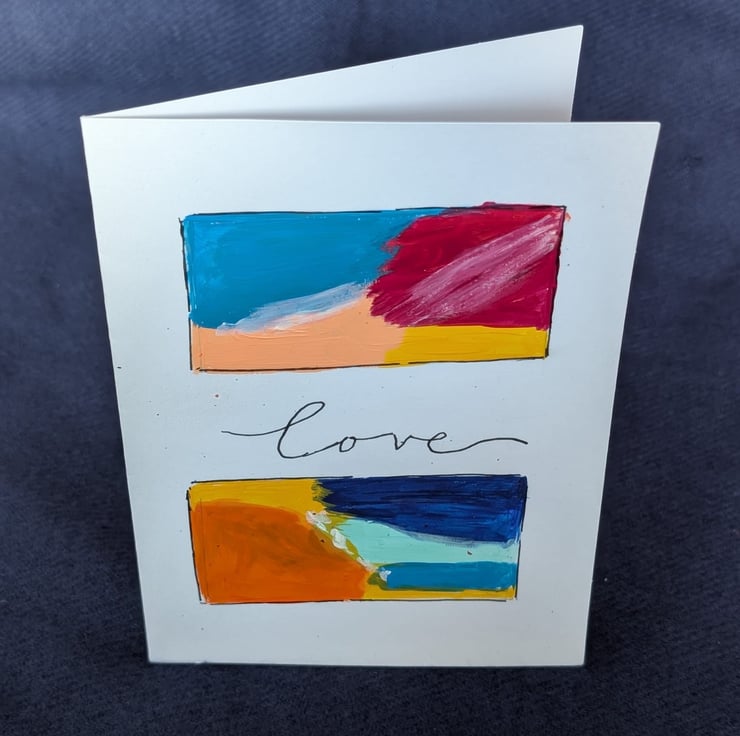 This is an original, hand-painted greeting card measuring 5 x 7 inches.