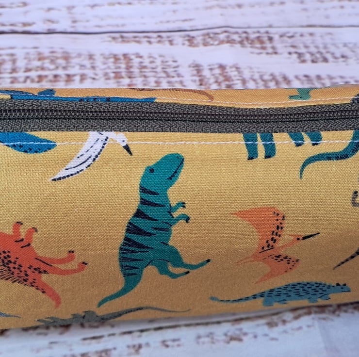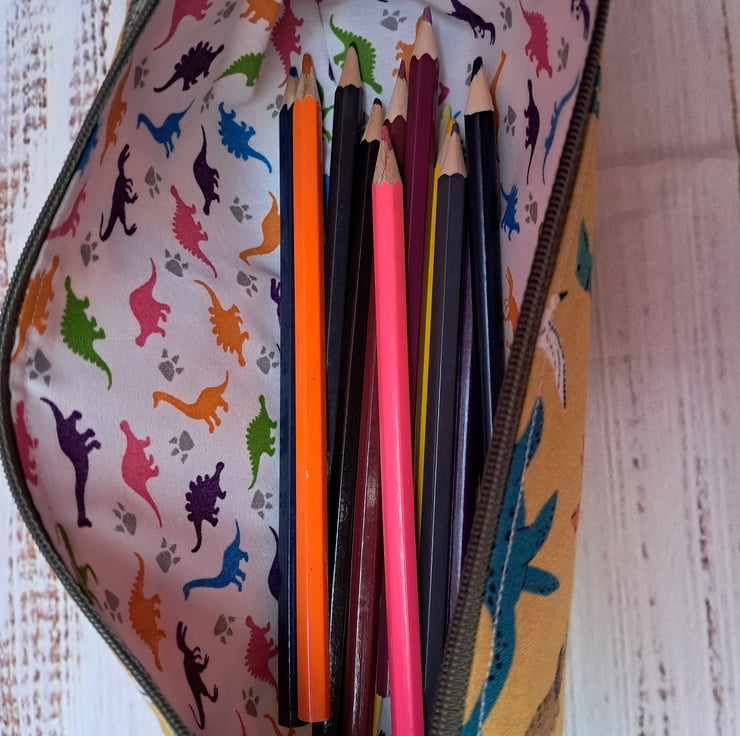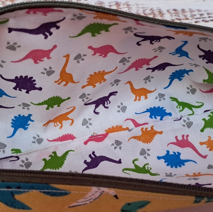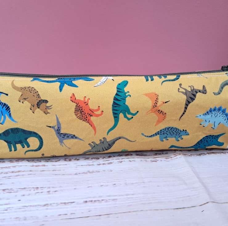 Dinosaur fabric long pencil case with lots of space. Perfect for stationary or small items.