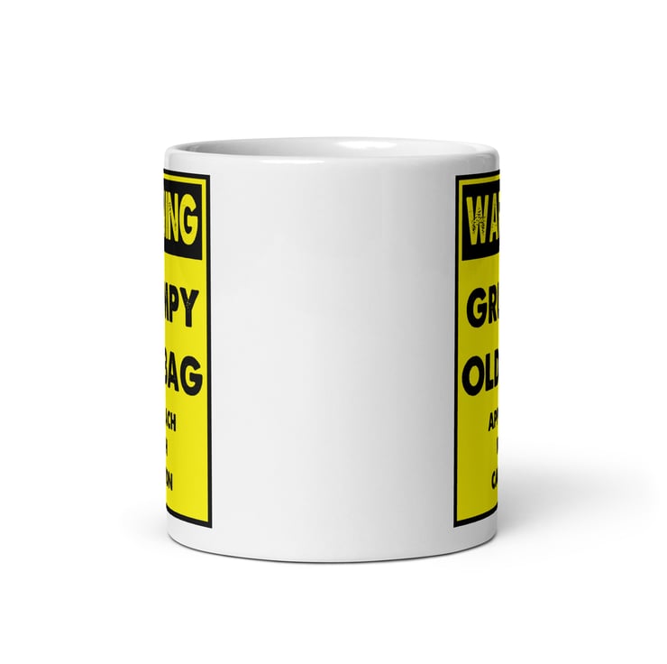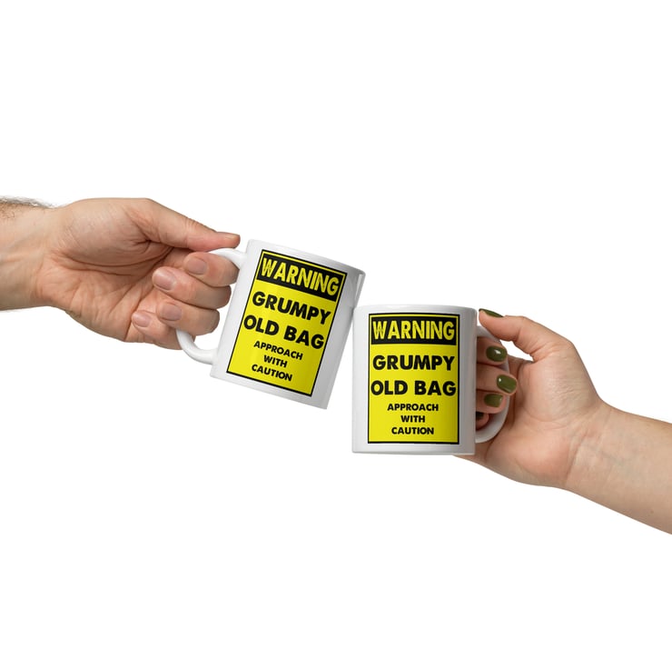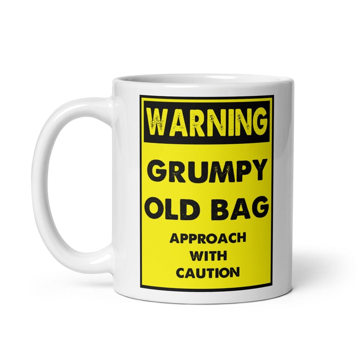 Make them laugh (or at least raise an eyebrow) with this bold “Warning Grumpy Old Bag – Approach With Caution” mug. Designed in a classic yellow hazard sign style with strong black lettering, this funny novelty mug is perfect for anyone who proudly embraces their grumpy side.