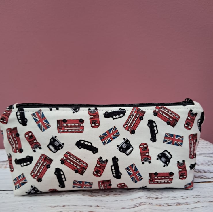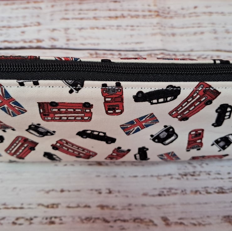 Fun London themed pencil case, perfect for stationary or small items. Fits regular length pencils and pens without taking up too much space.