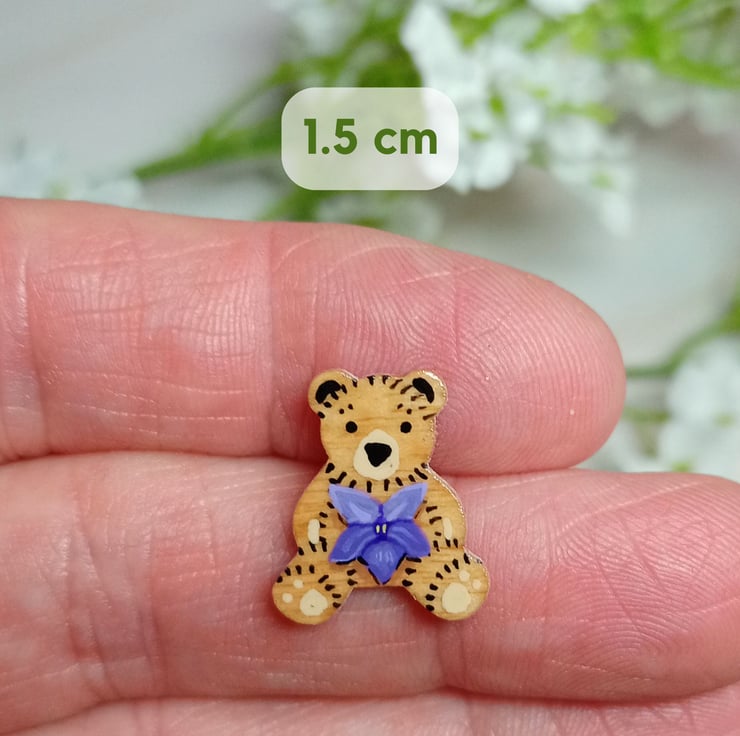 Handmade Tiny Violet Bear Brooch – Hand Painted Miniature Bear