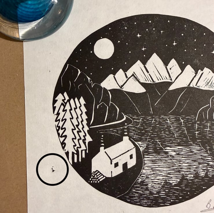 Perfectly Imperfect - Moonlit Mountains - original hand burnished lino print