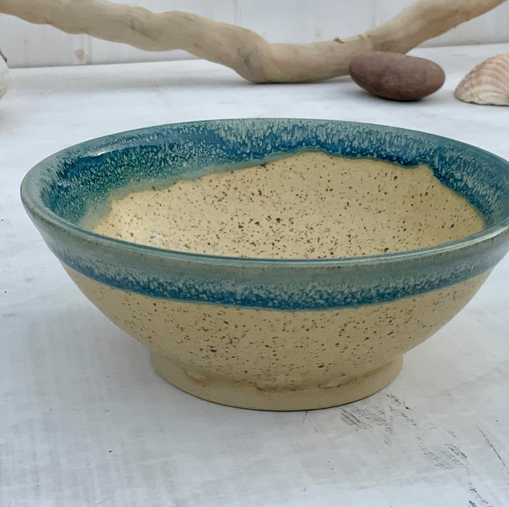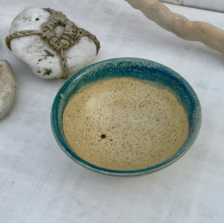 This beautiful little bowl is perfect for rings, trinkets or as a display piece. It has been wheel-thrown using stoneware clay and hand glazed with a combination of Winter Wood and Shipwreck glazes. The flow of the glazes and the hand turned foot make this an elegant item to enhance your home.
